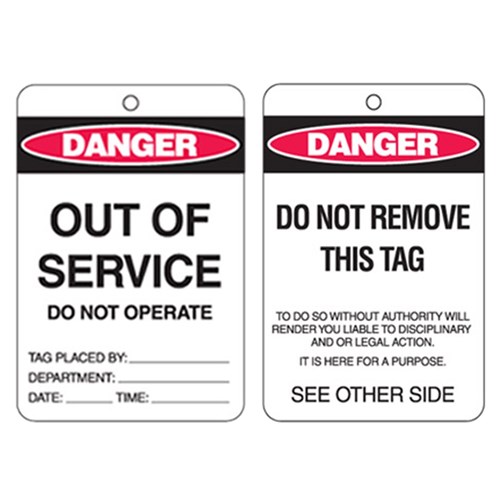 Brady Lockout Tags - Danger Out Of Service Do Not Operate - Cardstock