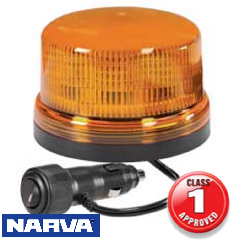 Narva 'Eurotech' low profile L.E.D strobe/rotator light. Features 6 selectable flash pattern with a magnetic base mount and 12/24v circuit.