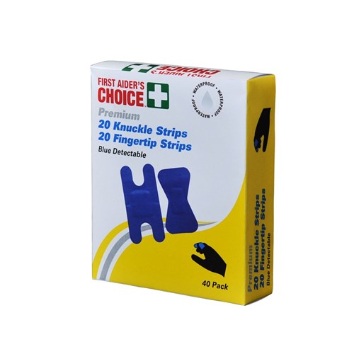 Temporary adhesive bandage used for covering minor wounds in food industry for knuckles and fingertips.