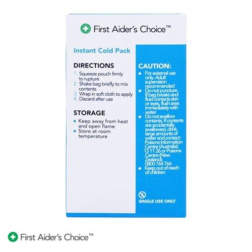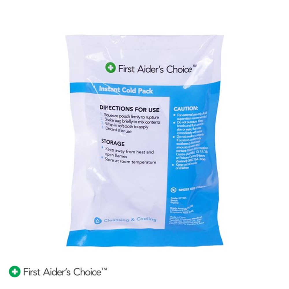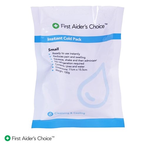 The First Aider's Choice Small Instant Cold Pack, provides quick, effective cooling in remote situations when ice is not readily available. Ideal for sprain treatments and other minor injuries, this single-use cold pack delivers approximately 20 minutes of cooling relief. Activation is simple—just squeeze and shake to begin the cooling process immediately. Whether at home, on the job, or during outdoor activities, this cold pack is a convenient solution for rapid first aid treatment when you need it most.