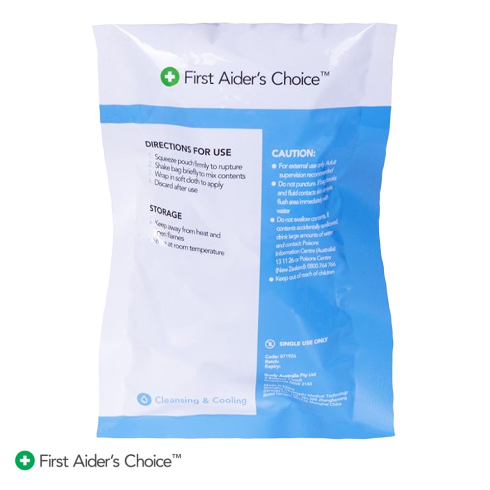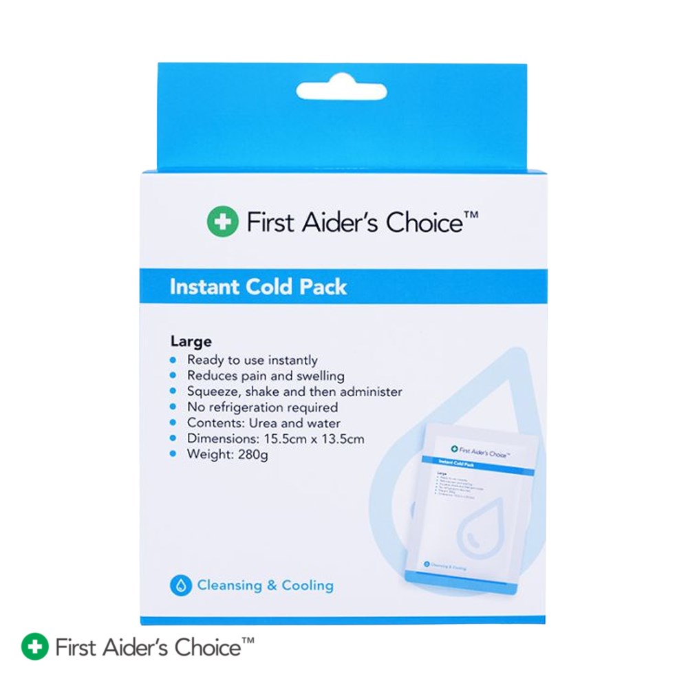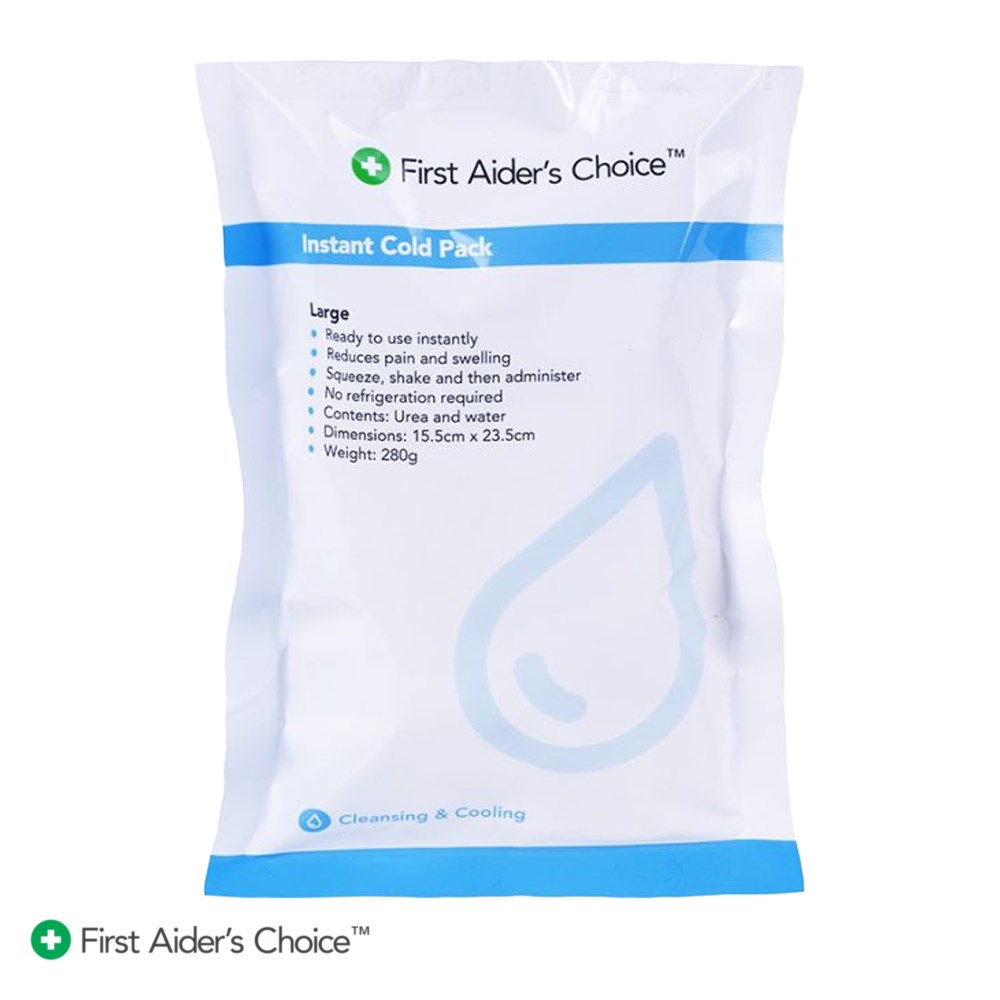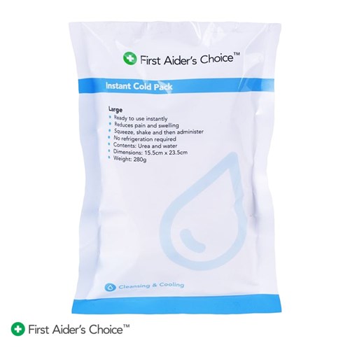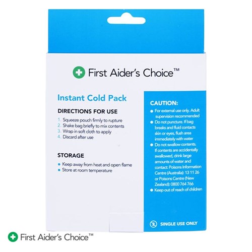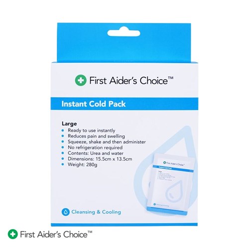 The First Aider's Choice Instant Cold Pack provides quick, convenient cooling for injuries when ice is not readily available. Designed for single use, it activates instantly with a simple squeeze and shake, delivering approximately 20 minutes of cooling. Ideal for sprains, strains, and minor injuries, it’s perfect for remote locations, sports, or emergency first aid situations.