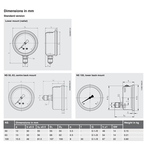 The liquid filled model 213.53 Bourdon tube pressure gauge is constructed with a case from stainless steel and wetted parts from copper alloy. This meets the requirements of the international industry standard EN 837-1 for Bourdon tube pressure gauges.