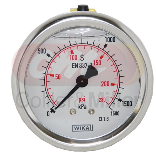 C&M stock a range of glycerine filled pressure gauges for use in many applications. the liquid filling ensures effective needle dampening, allowing for applications where high dynamic loads, vibrations and fast pressure cycles are present. Available in nominal sizes of 63 and 100 mm and fulfil IP65 ingress protection.