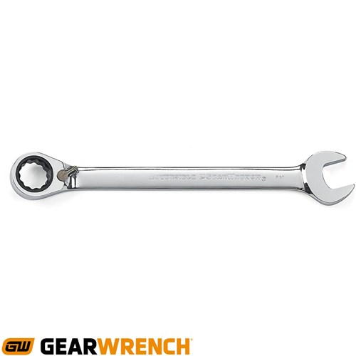 The GEARWRENCH 12 Point Reversible Ratcheting Combination Wrench is engineered to offer exceptional performance and precision for all types of applications. Featuring a 72-tooth ratcheting box end, it requires only a 5° swing to move fasteners, compared to the standard 30° swing of conventional wrenches, enabling faster and more efficient work. The flush-mounted reversing lever allows easy direction changes without removing the tool, while the off-corner loading design on the box end enhances grip and reduces fastener rounding. With a 15° offset at both ends, this wrench provides increased clearance for tight spaces and improved access in confined areas. Manufactured from durable alloy steel and finished with a bright full-polish chrome coating, it resists corrosion and is easy to clean, offering long-lasting reliability.