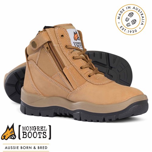 The Mongrel Non Safety Zipsider Boot features a zip guard, temperature regulating lining, and padded tongue and collar. The soles are slip, oil and fat resistance, with arch support and temperature regulating lining for superior comfort. The premium nubuck leather provides supreme comfort and longevity.