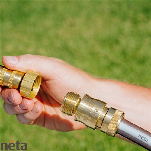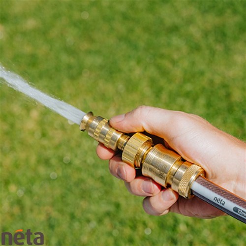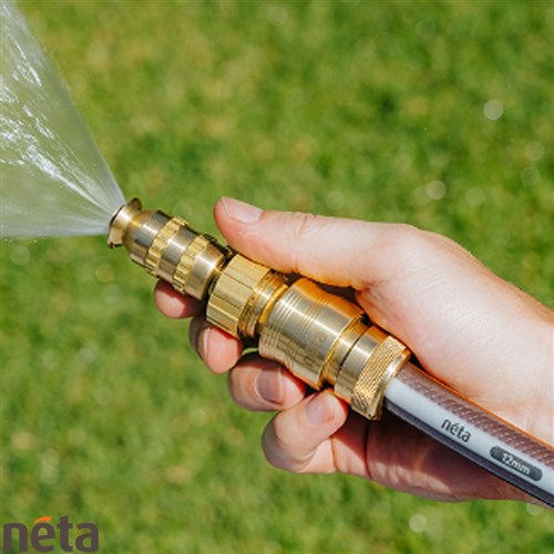 The Neta 3/4" Jumbo Screw-on Nozzle is a solid brass nozzle, ideal for everyday use during gardening, watering and cleaning. The versatile nozzle can be easily adjusted from spraying a jet of water to a fine mist, simply by twisting. Suitable for 3/4" thread hose ends.