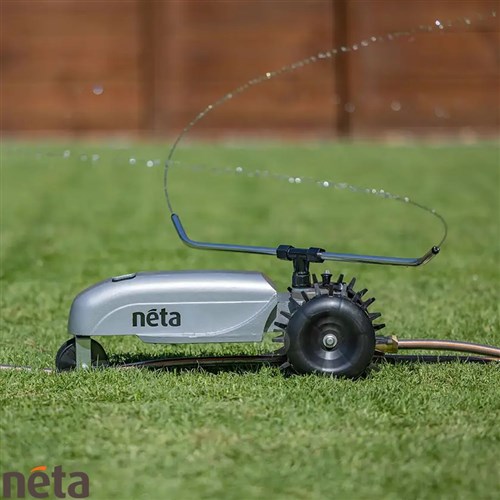 The Neta Travelling Sprinkler is the ultimate solution for efficiently watering large lawns and irregular garden spaces. With a coverage area of up to 1,240m², it uses a hose to guide the sprinkler along a pre-determined path, ensuring every corner of your lawn gets the right amount of water. The rotary spray provides even coverage ranging from 5m to 17m, and the speed can be adjusted to low, high, or stationary to suit different watering needs. Constructed from rust-proof cast iron, the sprinkler is built for stability and long-lasting durability. It easily handles slopes and irregular-shaped lawns, and comes with a shut-off ramp that halts both the sprinkler and water flow when needed. The Neta Travelling Sprinkler is perfect for anyone seeking an effective, customizable, and reliable watering solution.