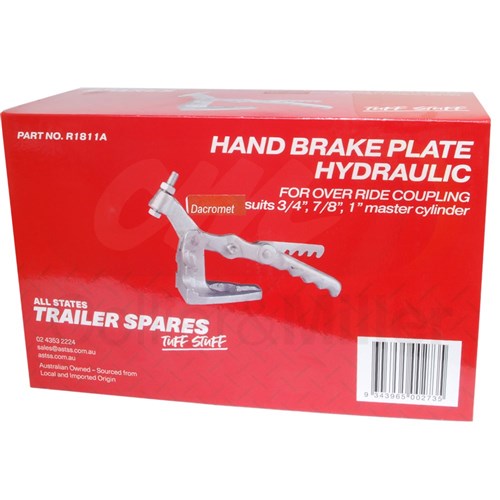 Featuring a zinc rich dacromet finish the hydraulic hand brake plate is designed for hydraulic override couplings fitted with 3/4", 7/8" or 1.00" diameter master cylinders. We stock this plate as a direct replacement for the Trigg Brothers A803 version that is no longer available