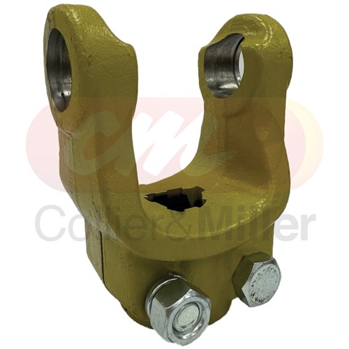 Splined clamp yokes are a mechanical component used in power transmission systems. Featuring a splined yoke with teeth that fit onto a corresponding shaft, ensuring a secure connection for transmitting torque. The clamping mechanism, usually bolts, allows for easy assembly, disassembly, and adjustments. Made from high quality machined cast iron.
