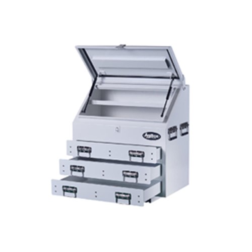 Designed for tough Australian conditions, the AG Box 3 Drawer Storage Unit combines heavy-duty strength with clean, organised storage. Manufactured from robust 1.5mm steel and finished in durable white powder coat, it offers excellent protection against wear and the elements. With gas struts for smooth lid operation and internal drawer dividers for efficient organisation, this box is ideal for utes, trailers, and worksites where reliability matters.