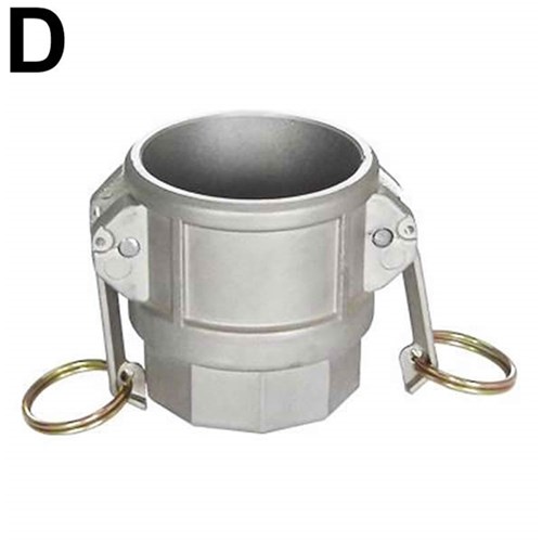 Standard aluminium Camlock coupling supplied with safety clips for general purpose hose coupling and transfer of various liquids.