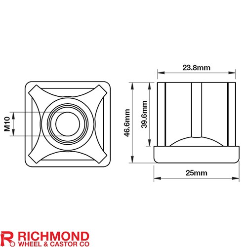 Richmond Wheel & Castor 25mm Square M10 Threaded Tube End Mild Steel