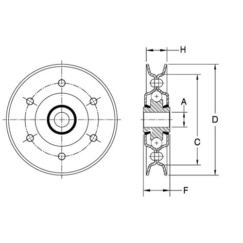 Aetna V-Belt Idler. Generally used as tighteners or direction changers. Permanently lubricated and sealed against grime and dirt. Fit into existing design with little or no engineering changes, or readily adapted to new designs.