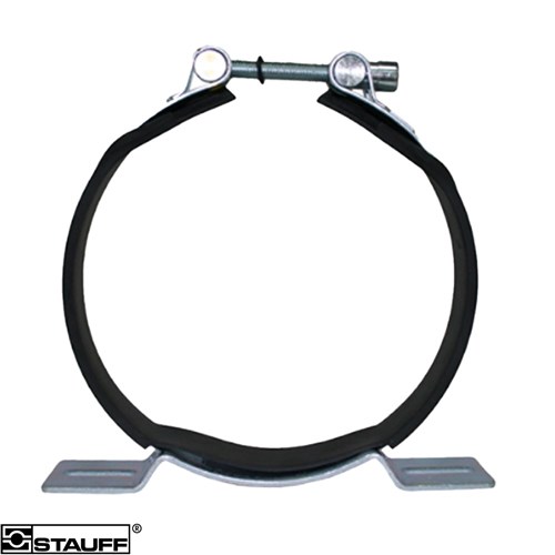 The Accumulator Clamp 156mm T/S STDA is a robust saddle-type clamp designed specifically for securing 2-litre hydraulic accumulators. Manufactured by Stauff, this clamp combines strength and reliability with anti-vibration protection. Its mild steel construction with a zinc-plated finish offers excellent durability and corrosion resistance, while the nitrile rubber strips ensure a firm, cushioned grip to protect the accumulator and reduce wear.