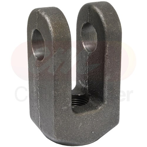 Quality cast steel hydraulic cylinder clevis yoke. Threaded to fit the rod end on agricultural hydraulic cylinders.