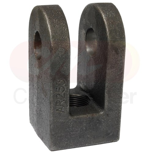 Quality cast steel hydraulic cylinder clevis yoke. Threaded to fit the rod end on agricultural hydraulic cylinders.