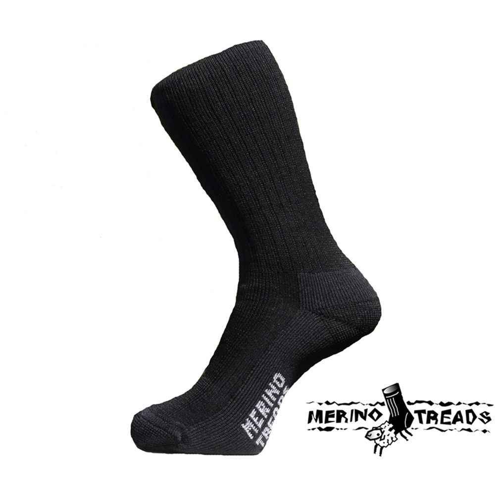 Merino Treads Allday Socks. The Merino Treads socks are made to last with the reinforced heel and toe area. Midweight all-purpose outdoor and everyday sock, using the natural characteristics of wool to wick and disperse moisture. Australian made. 75% Merino wool, 20% nylon and 5% elastin.