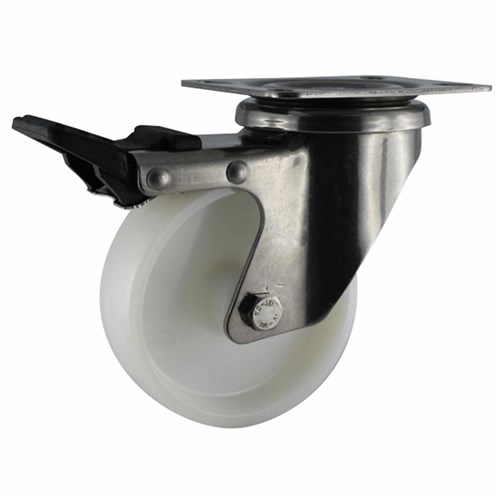 Castor 80mm Stainless Steel Braked Swivel Nylon – 100kg Load Capacity