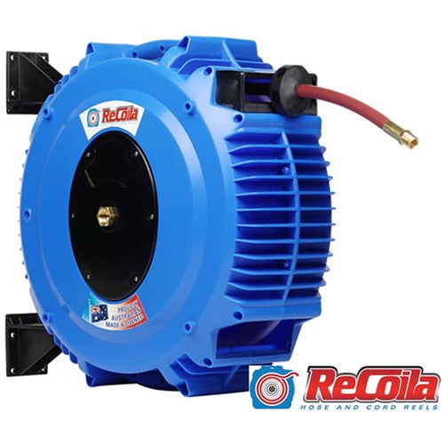 Designed for compressed air and water transfer, ReCoila Gen III AW Series reels are the perfect solution for general workshop applications.Easy to operate - simply pull out the desired length and theunique ratchet mechanism locksthe hose when place. When you are finished, a gentle tug releases the ratchet and the spring allows the hose to be coiled back onto the reel.