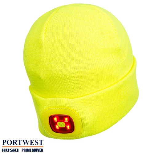This high-performance acrylic beanie hat features two removable LED lights on the front and back for all round visibility.