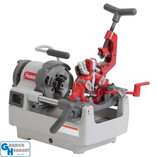 The Garrick Herbert ASADA Beaver Threading Machine offers precise and efficient threading for a wide range of pipe and bolt applications. With the ability to thread BSPT, NPT, BSW, UNC, UNF, Conduit, and Metric threads, it works seamlessly on materials like stainless steel, high tensile, galvanized, and mild steels. The machine features a capacity of up to 1” and includes all necessary dies, dieheads, cutter, reamer, threading oil, and tubular legs. With both auto and manual operation, it provides versatility for various tasks. The footswitch adds an extra layer of safety, while the 350W motor and 52rpm spindle speed ensure smooth, reliable performance.
