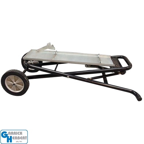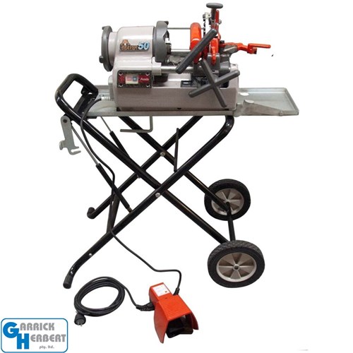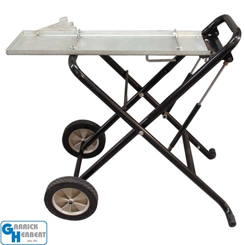 The Garrick Herbert Folding Wheel Stand is a collapsible trolley cart designed for mounting the ASADA B50-AT & B50 Threading Machines. Built for portability and convenience, it features a removable working tray for ease of use and gas struts that allow for easy raising from the collapsed position. Constructed with all-steel, powder-coated material, it offers durability and long-lasting performance. Weighing just 26kg, this stand ensures efficient mobility and stability in any workshop setting.