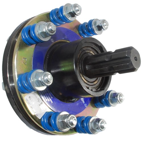 Bare Co. blue-torque heavy-duty, high-capacity friction type safety clutch fitted with safety free-wheel mechanism. The design of the blue-torque clutch offers increased power transmission in a smaller diameter clutch. Ideal for use in agricultural applications including slashers, chaser-bins and other PTO powered machinery.
