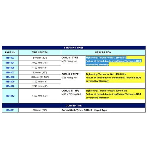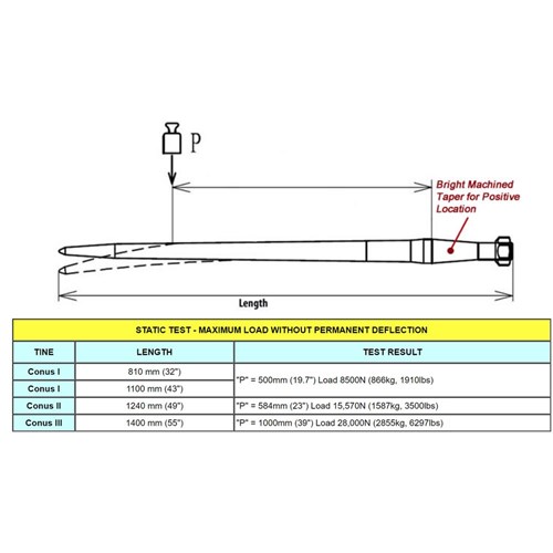 This is a straight tine with a Conus 1 taper. Static test load without permenent deflection is 8500N,866KG,1910Lbs.