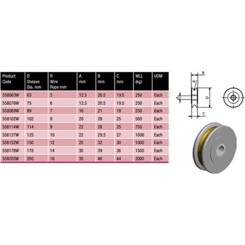 HAND SHEAVE 76MM OD - SUIT 6MM