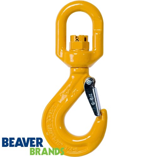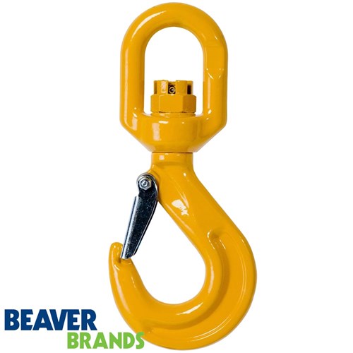 The Beaver Grade 80 Eye Swivel Hook With Safety Latch allows the lifting hook to swivel under load, thereby reducing the twist of a sling.
