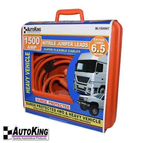 These heavy duty 12 volt jumper leads feature surge protection, a Nitrile outer insulation for high flexibility & heat resistance with quality connections and an extra long 6.5 metre cable length.
