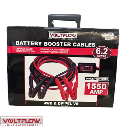 The Battery Booster Cable 1550AMP is a heavy-duty solution for fast and reliable vehicle jump-starts. Designed with durable 6.2-metre nitrile-insulated cables and VoltFlow surge protection, it ensures maximum safety and efficient power delivery in automotive and industrial applications.
