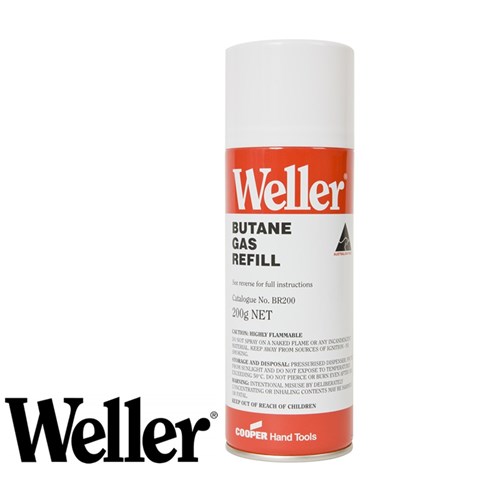Butane refiller for Weller soldering irons 200 Grams. Suitable for Weller products; WPA2, WSTA3, WSTA6, WSTA5, P1C, P1KC, PP1K, PSI100K, P2KC, ML100, ML200, ML500MP.