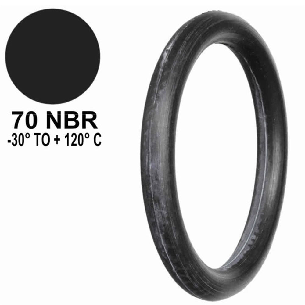 Nitrile (Buna N) 70 Durometer O-ring. Good resistance to mineral based hydraulic fluids, water, alcohol. Temperature range -40 Degree C to +120 Degree C