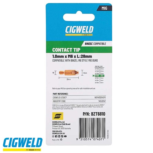BZL Contact Tip 1.0mm M6 L: 28mm Pack 10