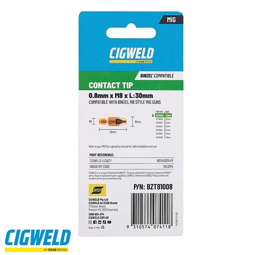 BZL Contact Tip 0.8mm M8 L: 30mm Pack 10