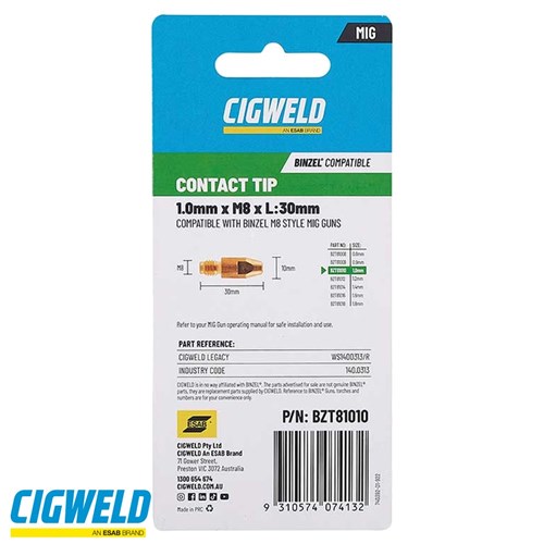 BZL Contact Tip 1.0mm M8 L: 30mm Pack 10