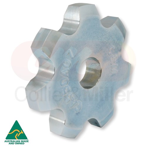 This plate wheel is fully machined from 18mm grade 1045 steel, supplied with a 1.00" pilot bore. We stock a range of plate wheels to suit CA550 and S52 chain and machine these in our own workshop.