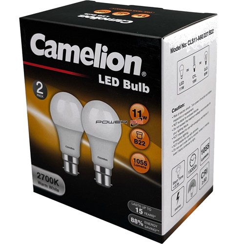 Camelion Led Light Globe 11 Watt 240V Bayonet 2PK - Warm 2700K