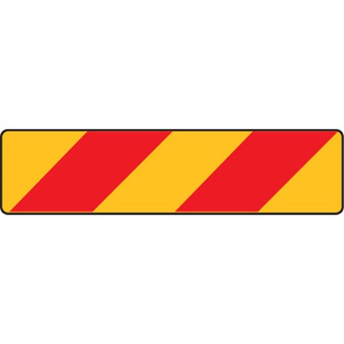 Rectangular aluminium sign, yellow and red reflective diagonal stripes, left marker.