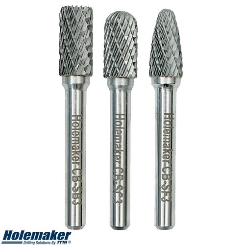 The Holemaker Industrial Quality Carbide Burrs, feature an innovative Double Cut Geometry. Specifically engineered for cutting ferrous metals, these burrs provide exceptional control and efficiency, ensuring smooth and precise material removal. The double cut design reduces operator fatigue, enhances surface finish, and increases productivity. Crafted from premium carbide, these burrs guarantee long-lasting durability and reliability for all your industrial applications. Upgrade your toolkit with the best in the industry and achieve outstanding results with ease.