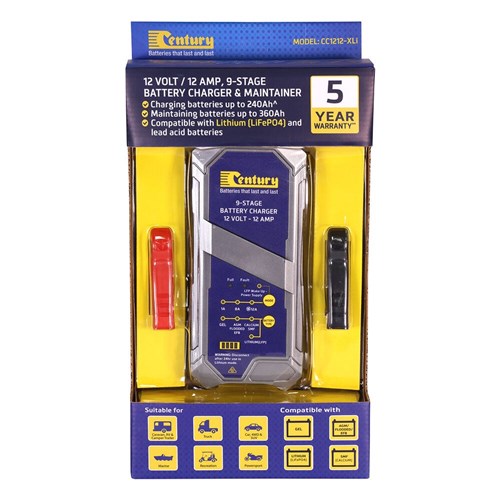 Century’s range of battery chargers and maintainers are here to help charge 6 volt and 12 Volt conventional lead acid batteries rated up to 240Ah^ and maintain those rated up to 360Ah. Backed up with a 5 year warranty*, these smart battery chargers can be used for charging and maintaining batteries in the following applications: