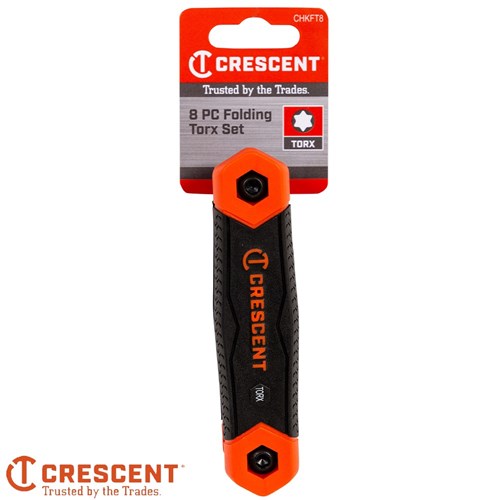 Crescent hex keys are available in fold up or long arm types in the most common sizes. They are manufactured from a high strength alloy steel and have size markings for each key. The long arm hex keys are housed in a sturdy, plastic caddy.