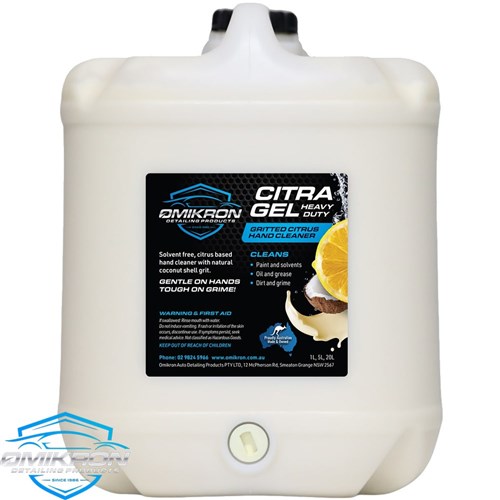 Citra Gel Heavy Duty Gritted Hand Cleaner is a citrus-based, solvent-free solution that’s as tough on grime as it is gentle on your hands. Formulated with natural coconut shell grit, this Australian-made cleaner effortlessly tackles paint, oil, grease, and dirt without leaving your hands dry. Whether you're dealing with the toughest workshop mess or everyday grime, Citra Gel delivers a powerful clean in every wash. Available in a convenient 4L cartridge or a 20L drum for larger needs.