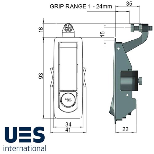 FLUSH MOUNT GRIP RANGE 1-24MM L=93MM W=34MM ARM=16MM