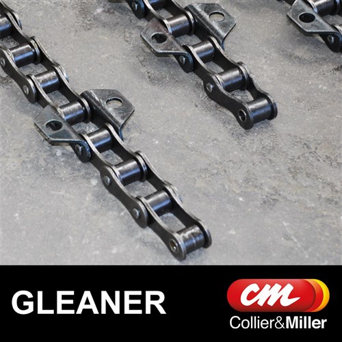 Built in Australia from TIMKEN-DRIVES USA Chain Features OEM bar pattern same as Gleaner Attachment holes accept Gleaner Bars Complete with connectors and Half links Premium CHROME-PIN Chain