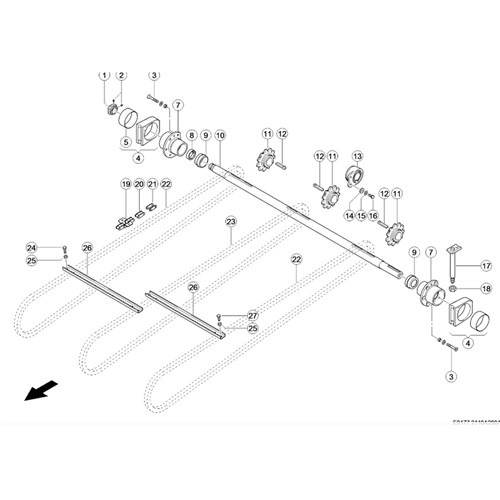 C&M replacement complete feeder house chain assembly to suit the front feeder house on CLAAS® LEXION™ combine harvesters with APS width of 1420mm. This is a set of three (3) replacement chains fitted with electroplated 6mm serrated u-bars with the same spacing as the original CLAAS® chains.
