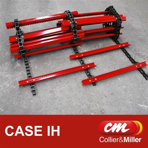 C&M aftermarket replacement feeder house complete feeder house chain assembly to fit the front feeder house on early model CASE-IH® combine harvesters. This is a full set of replacement chains with 6mm serrated u-bars same spacing as the OEM chains.
