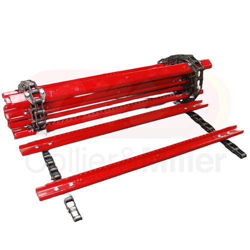 This complete chain assembly is supplied with connectors and half links for each strand. We supply these chains in Australia from premium grade chain and durable zinc plated serrated 6mm U-Bar slats. We guarantee the quality of these unit, however we recommend you fit a new sprocket at the time of installation
