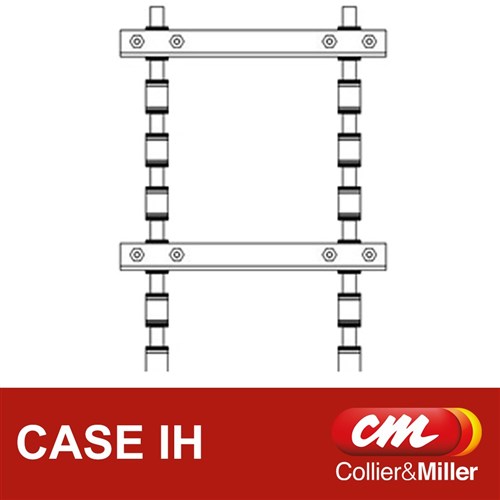 C&M replacement feeder house chains only set to suit the front feeder house on CASE-IH combine harvesters.This is a set of two (2) replacement chains fitted with 6mm zinc plated serrated U-Bars the same spacing as the original CIH chains.